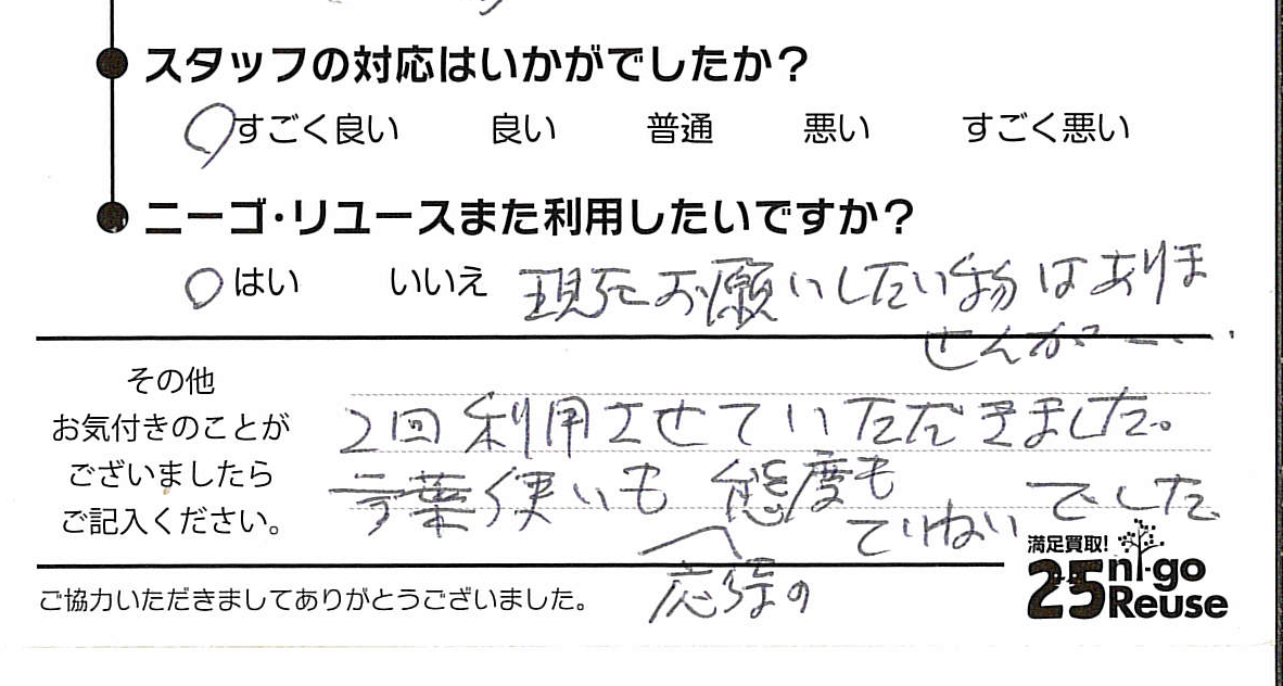 ニーゴ・リユースをご利用いただいたお客様の声
