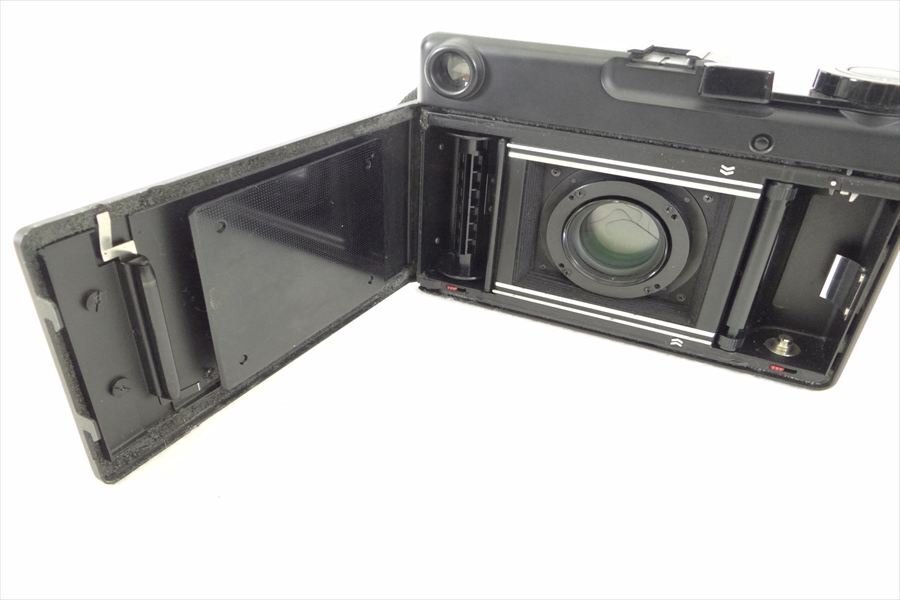 フォーカスはレンジファインダー連動のマニュアル方式で、二重像合致による精密なピント合わせが可能。露出は中央重点測光による絞り優先AE的動作で、露出計の指示に従ってシャッター速度を設定するスタイルです。シャッターはコパル製のレンズシャッターで、1〜1/500秒+Bに対応。機械式の信頼性と静粛性を備えています。金属外装による堅牢な作り、蛇腹構造による内面反射の少なさ、ニッコールレンズの高い描写力が組み合わさり、コンパクトながら本格的な6×7判画質を楽しめる希少な存在です。