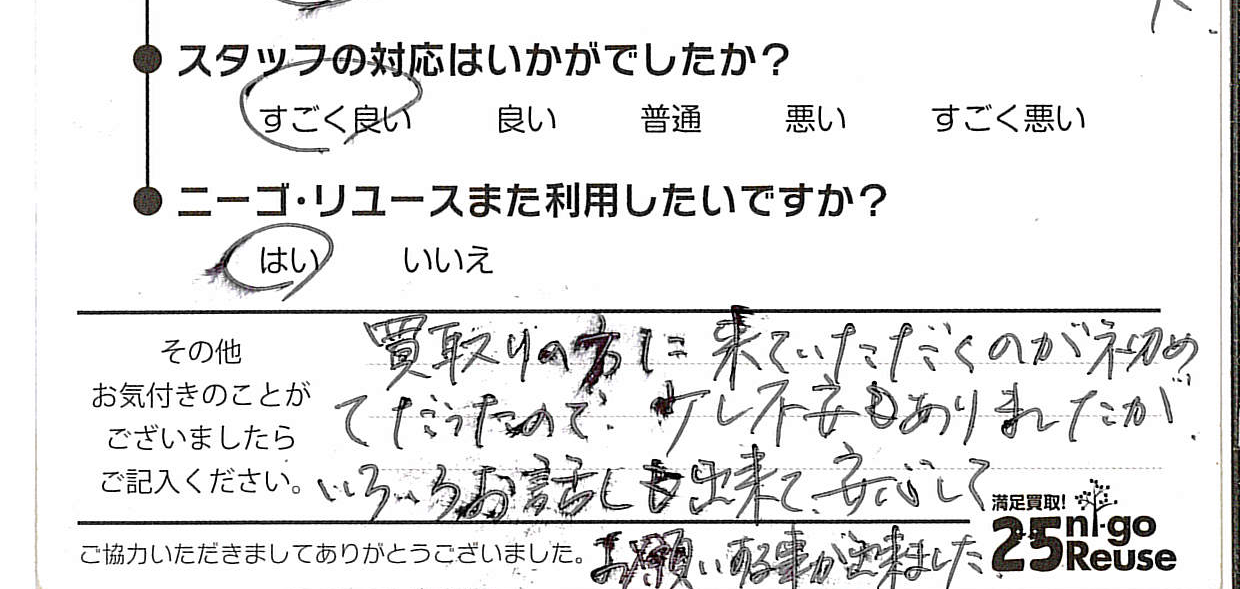 お客様がご納得のいく金額にならない場合は、お断りいただいても問題ございません。その際も費用などは一切発生しませんのでご安心してニーゴ・リユースの買取査定をご利用ください。