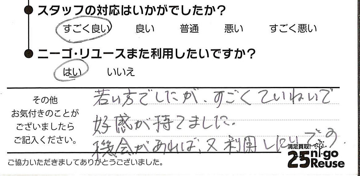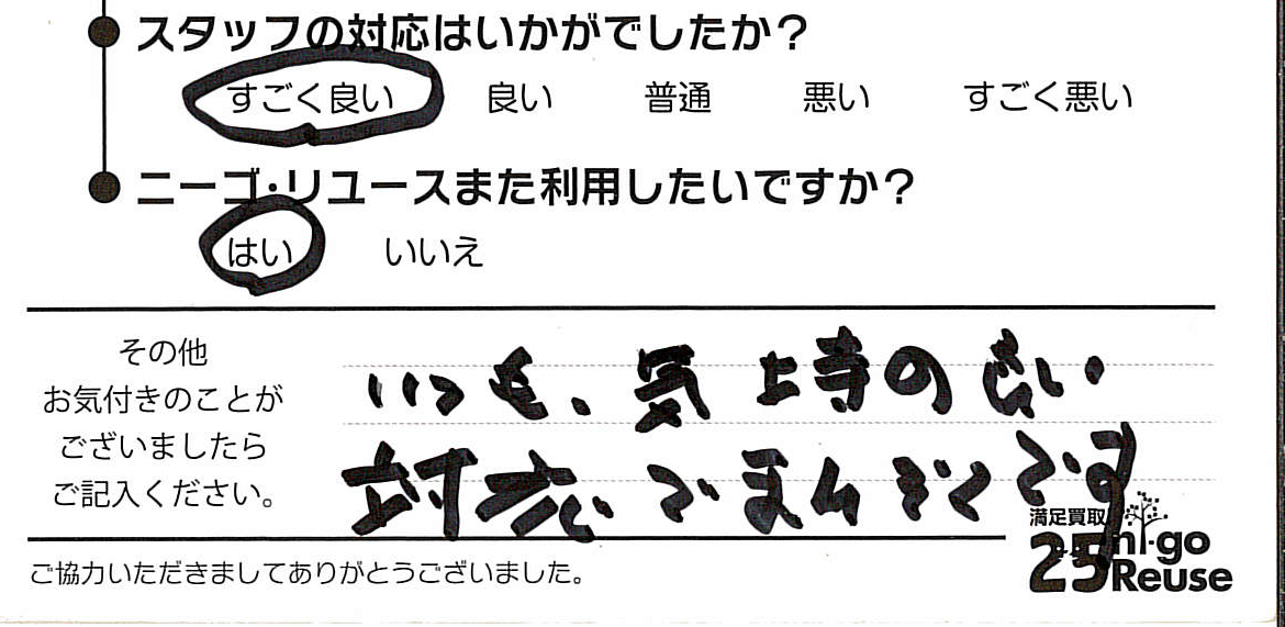 お客様がご納得のいく金額にならない場合は、お断りいただいても問題ございません。その際も費用などは一切発生しませんのでご安心してニーゴ・リユースの買取査定をご利用ください。