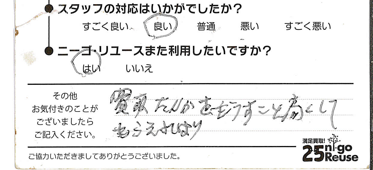 お客様がご納得のいく金額にならない場合は、お断りいただいても問題ございません。その際も費用などは一切発生しませんのでご安心してニーゴ・リユースの買取査定をご利用ください。